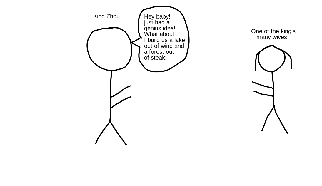 I’m now going to skip a few hundred years of history to the final years of the Shang Dynasty, to the rule of King Zhou of Shang. Let’s see if what I’m about to say sounds familiar.