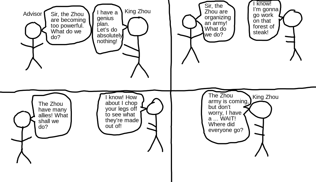 But unfortunately, King Zhou kept having “genius” ideas like this: